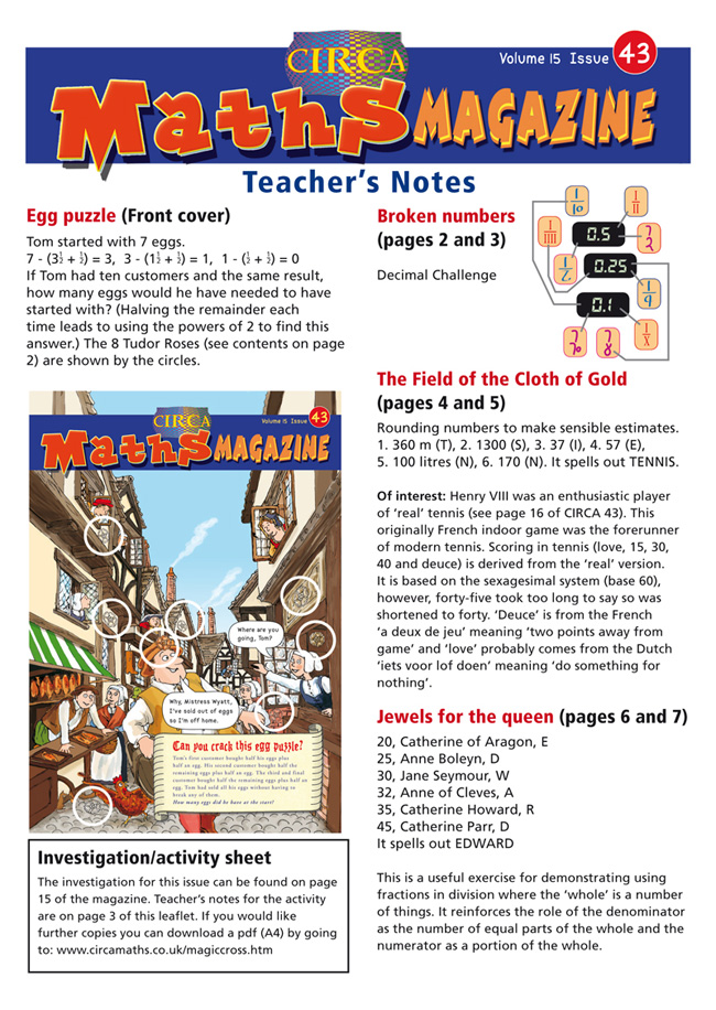 To download a pdf of Circa 43 Teacher's Notes':